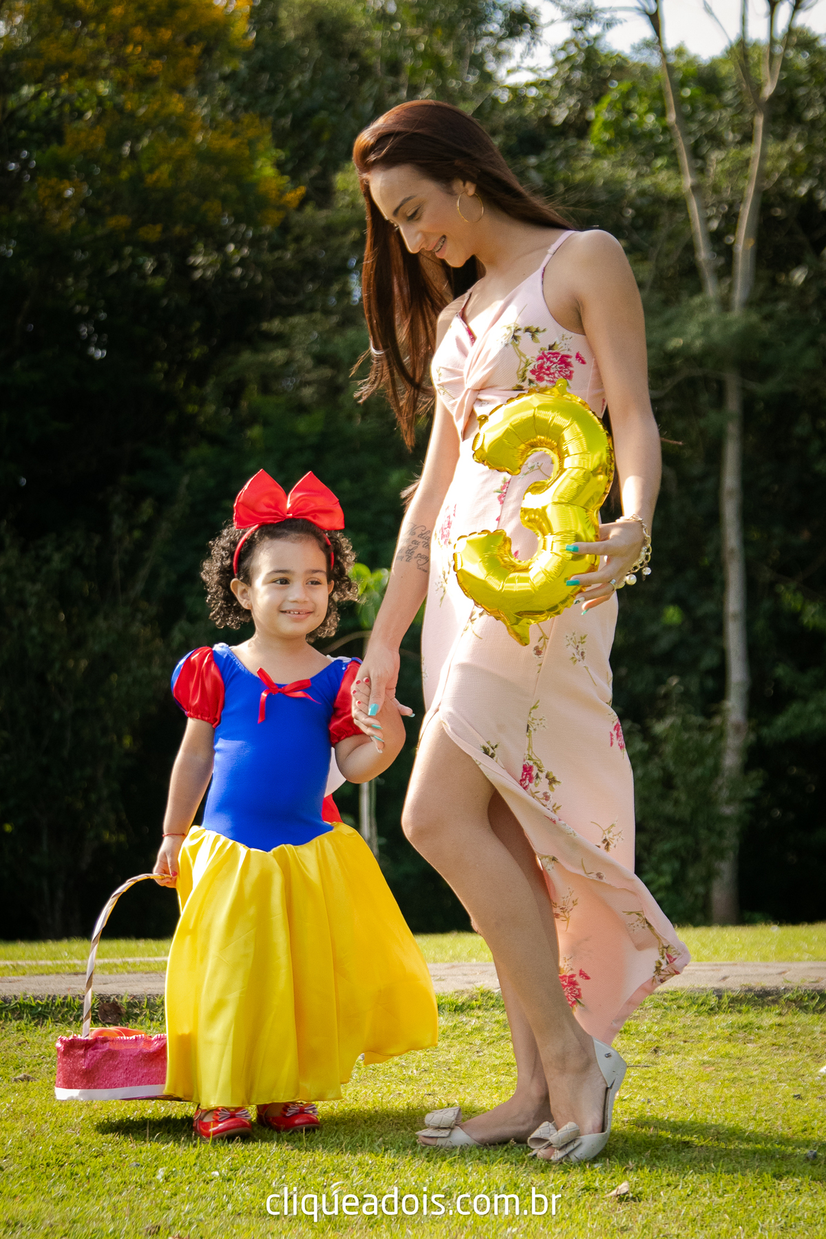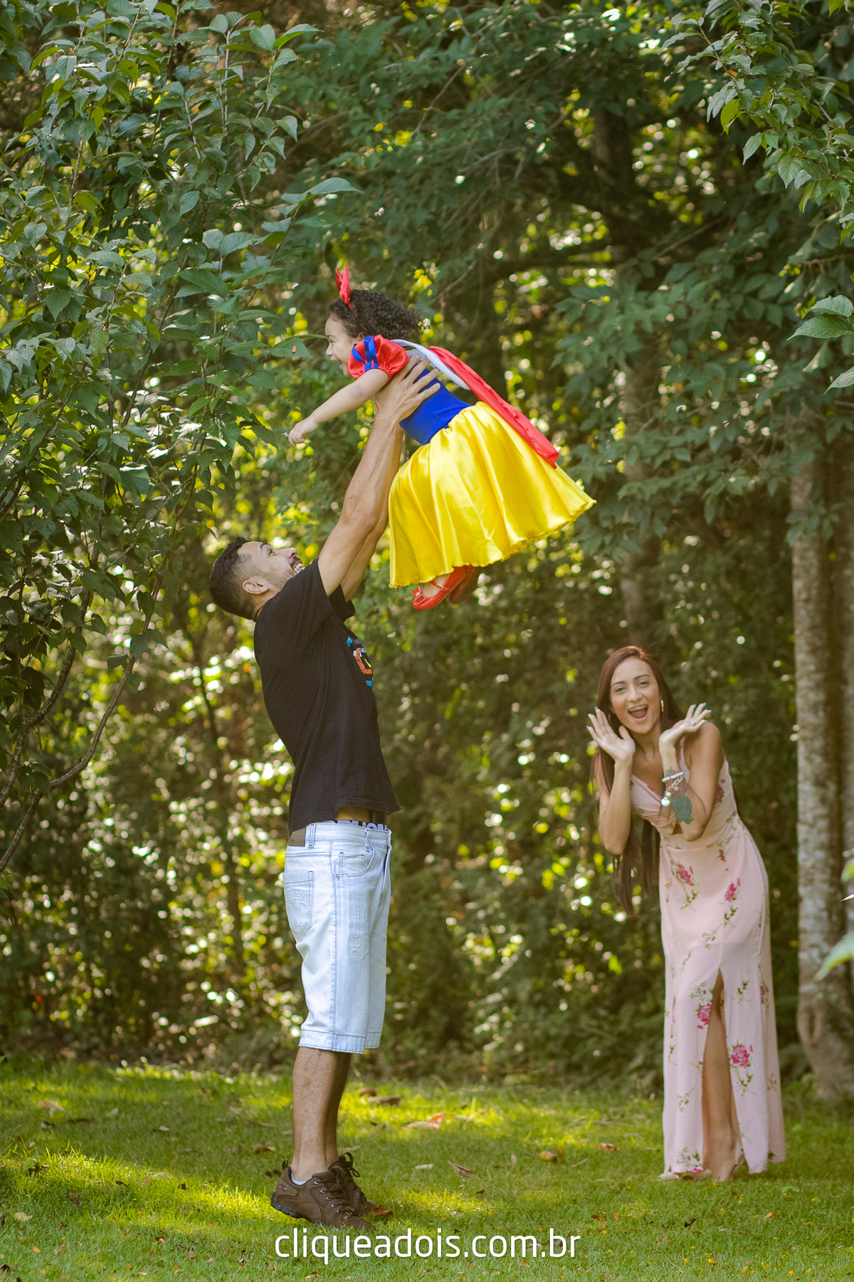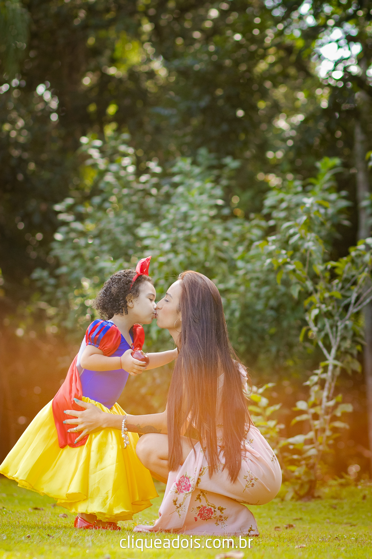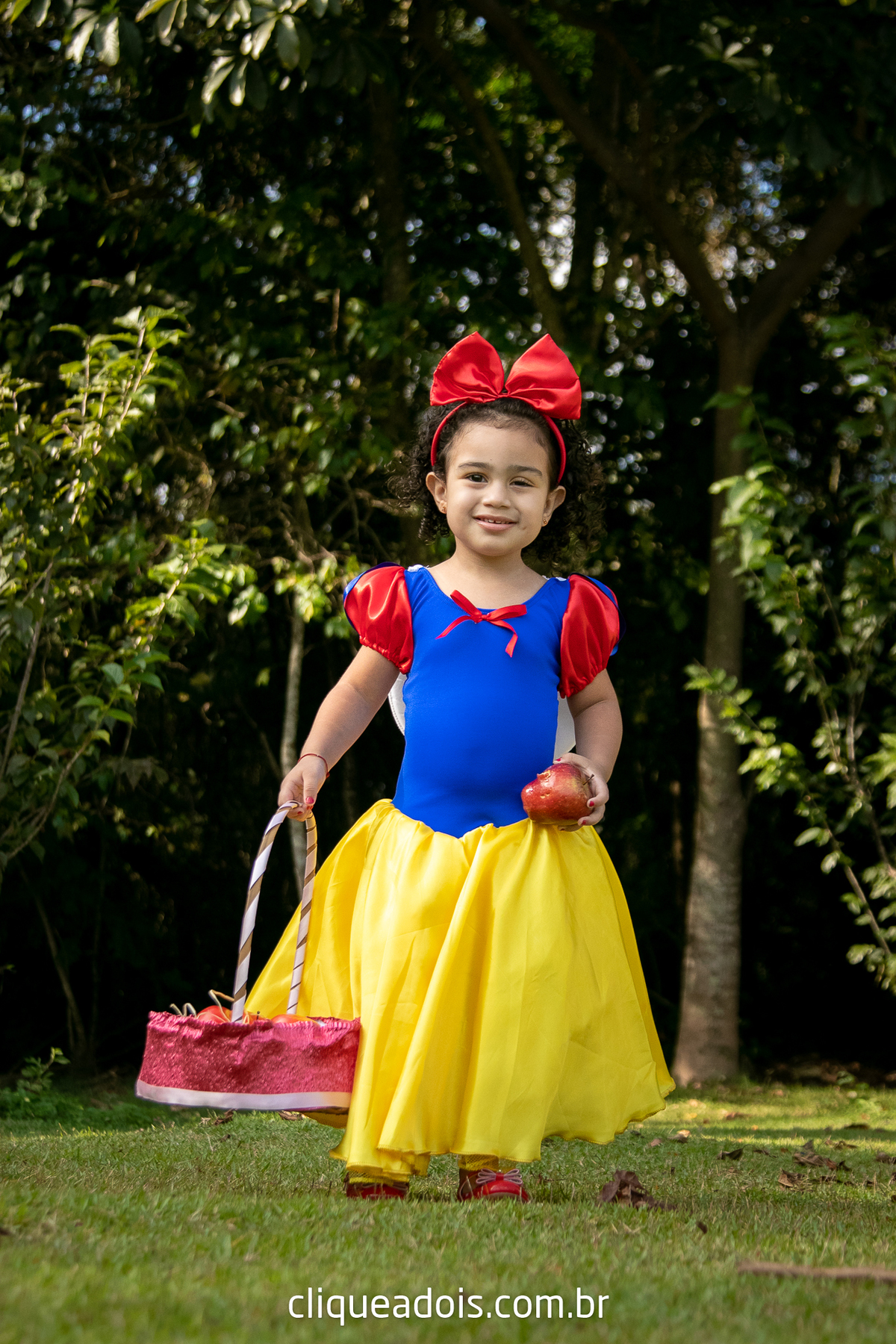 Um belo dia ela pediu a mamãe e o papai para passear no parque e nós fomos lá fazer lindas fotos do ensaio infantil da Branca de Neve.